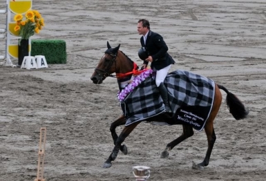| Queenslander Billy Raymont riding Ocean Beach NZPH took out the prestigious world cup qualifier at the Sydney International Equestrian Centre on Sunday. (Photo: Franz Venhaus/EA) |