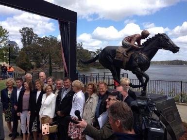 | The owners of Black Caviar have announced she is pregnant as thousands of people gathered in the Victorian town of Nagambie for the unveiling of a full-size bronze statue of the champion mare. (photo: Swettenham Stud) |
