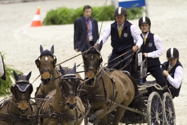 Wild card driver Thibault Coudry (FRA) faced the hardest challenge. The 32-year old driver not only had the disadvantage of starting first, but he also had to put a wheeler horse in the lead of his team after one of his fast and experienced leader horses was injured and did not pass the horse inspection. Coudry, who is a regular wild card competitor in Bordeaux, drove his team as best he could and finished on a well-deserved fifth place. The horses of the third Dutch driver Theo Timmerman were too fresh and he was unable to drive them the way he had planned. He came in sixth, ahead of Tomas Eriksson.