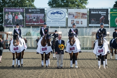1. Great Britain 76.183: Pasoa (Nikki Crisp) 69.700, Marakof (Michael Eilberg) 72.650, DV Stenjkers Nadonna (Gareth Hughes) 74.250, Uthopia (Carl Hester) 81.650.