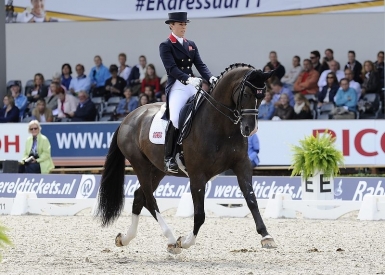 Second into the arena, it was Helen Langehanenberg (GER) and Damon Hill NRW who held the lead after the first tranche of riders completed. But there was a tension about the work produced by the German duo who were awarded a score of 71.079. Meanwhile Faurie's calm, controlled ride on the big bay gelding Elmegardens Marquis included some lovely piaffe, but few could have expected that his compatriot Dujardin would produce a personal-best performance on her debut at championship level to place the British in a position of such strength.