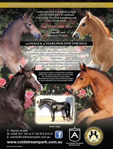 Coldstream Park Warmblood Stud is holding an Open Day and combined ACE Group Tour Foal Assessment and Colt Classification on 22 February 2014.
