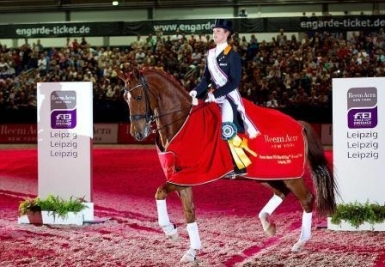 The Netherlands' Adelinde Cornelissen claimed the Reem Acra FEI World Cup™ 2010/2011 Dressage title tonight in Leipzig, Germany with a superb performance from Jerich Parzival. Photo: Kit Houghton/FEI. Story: Louise Parkes/FEI |