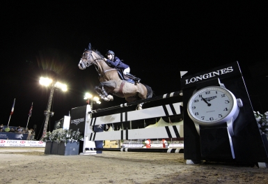 In a spectacular jump off in front of a full house the US rider left William Funnell on Billy Congo in second place and Edwina Tops-Alexander on Guccio in third and shook up the ranking for the 2013 Longines Global Champions Tour series.