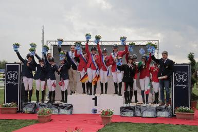 The first team gold medals were awarded to the Young Riders from Germany who pipped the Norwegian silver medallists by just a single fault while the host nation of Italy claimed the bronze.