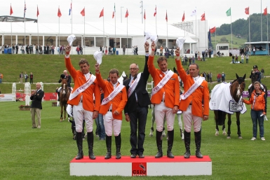 1. The Netherlands 7 faults: Tyson (Leon Thijssen) 4/0, Sterrehof's Voltaire (Marc Houtzager) 1/4, BMC Utascha SFN (Jeroen Dubbeldam) 1/0, Eurocommerce New Orleans (Gerco Schroder) 9/1.