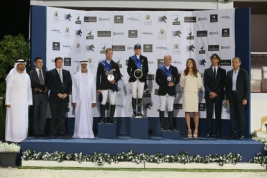 With both riders on 4 faults, and not in the second round, Edwina was declared 2012 Champion making history after achieving the same title last year. She had the advantage over Rolf with a podium win at the start of the season. His Highness Sheikh Nahyan bin Mubarak Al Nahyan, father of leading UAE rider Sheikh Shakboot bin Nahyan Al Nahyan, attended the prize giving ceremony. Charlotte Casiraghi and Gucci President and CEO Patrizio di Marco were present with the winners in the Al Forsan arena.