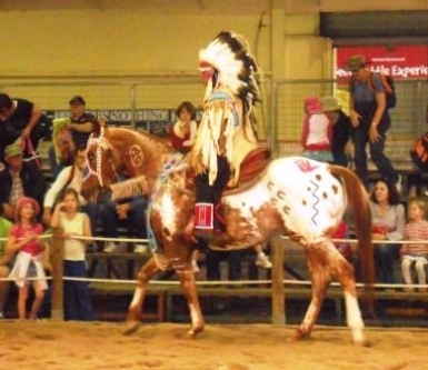 The Appaloosa is one of the oldest recognised breeds in the world, having been found depicted in primitive cave drawings in what is now Europe. An Appaloosa will stand out and draw a crowd whereever it goes, not only for its unique spotted colour pattern (with no two horses ever the same!) but also for its Native American heritage. Everybody loves Indians! Witness the never-ending photo sessions with our 'Indians' at the Appaloosa stand!