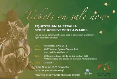 Equestrian Australia (EA) will be holding its annual Sport Achievement Awards Night on 2 May 2012 at ANZ Stadium, Sydney Olympic Park.
