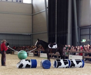 Jo: The Australian Open Reining Championships and Australian Open Barrel Racing Championships were pretty fabulous. I also found the Arabian Horse Breeders Alliance Australasia Cup Led Classes, where three judges held up the scores on cards for each category and the crowd are allowed to pat the horses, while total scores were being calculated, interesting. The 'Mini-Tana' was great too!