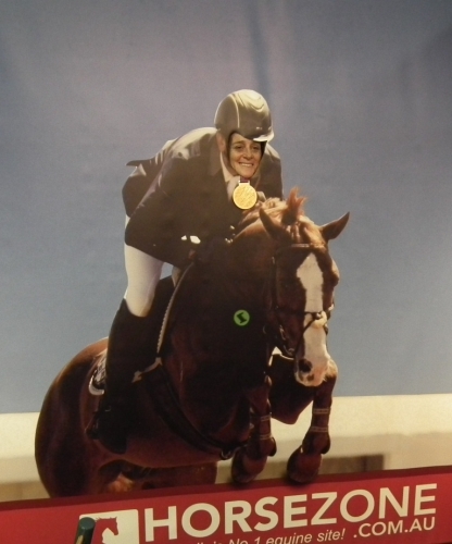 The Treasure Hunt task at the Horsezone stand was having a photo taken 'riding' our showjumper. Pictured (top) is winner, Macey Humphries, flying high over the Horsezone sign!