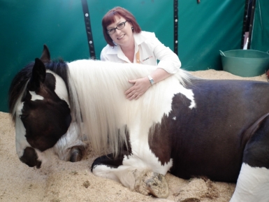 | Jo making friends with a Gypsy Drum Horse in the Breeds Expo |