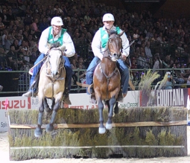 City visitors were able to enjoy the Man from Snowy River Corryong experience in air conditioned comfort! Winners from previous challenges teamed up in pairs today to complete the Packhorse and Shoeing, Stock Handling and Cross Country components of the EQUITANA Legends Challenge. The winners of Saturday's heats ride off in Sunday's finals to determine just who is the Legend's Challenge Champion!