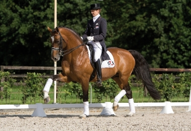 Aged five, Prestige VDL received sixth place in the finals of the Breeders Trophy, winning all five qualifications. In 2004, he was champion of the KWPN Stallion Competition at 3rd level and then moved to Edward Gale for FEI Training. Although he has only had a few starts at Prix St Georges level he has already scored 70% plus in international Grand Prix and is described as a dressage sensation in the making.