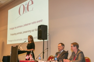 After the inaugural address by OIE President, Dr Karin Schwabenbauer, HRH Princess Haya took the stand in a packed auditorium at the Marriott Rive Gauche Hotel and focussed on the importance of taking innovative action and finding sustainable solutions to human and animal health issues.