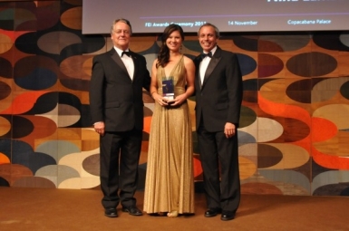 FEI Awards Ceremony, Rio de Janeiro, November 2011 - from left to right: FEI First Vice-President John McEwen, Nina Lamsam Ligon, FEI Second Vice-President Pablo Mayorga Photo: © FEI/Rosane Bakierman |
