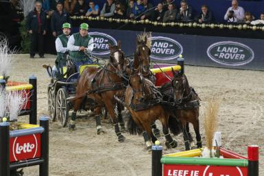 De Ronde drove the same four-in-hand horses as last week at London Olympia where he finished second. An unlucky knockdown in one of the marathon obstacles prevented him from securing his fifth victory at Mechelen and he had to leave the honours to fellow countryman Timmerman.