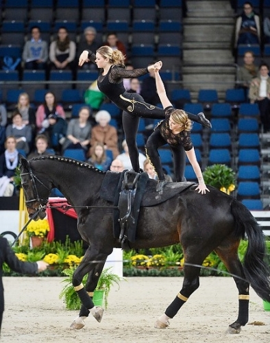 | Sister Act - American sisters Cassidy and Kimberly Palmer secured a pas-de-deux victory at the FEI World Cup™ Vaulting 2013/2014 leg at the Stuttgart German Masters. Photo: Karl-Heinz Frieler/FEI Story: Daniel Kaiser/FEI |