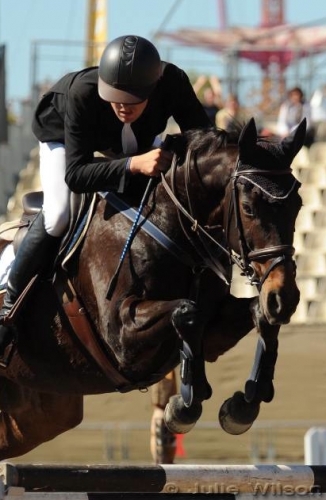 | James, riding Dreamtime Invader, on the way to winning Champion Young Rider at Sydney Royal Show (photo: Julie Wilson) |
