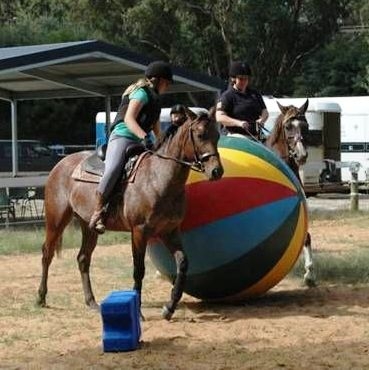 | Two year old Oregon Park Justin Affair, playing soccer at Harcourt Pony Club with his 16 year old rider Katie Petrusma - showing his great Appaloosa temperament |