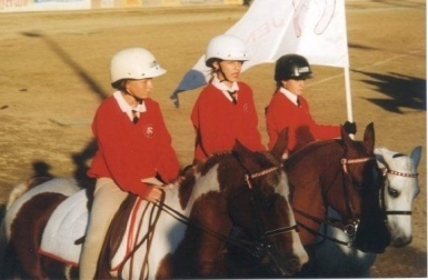 After starting riding lessons aged five at Kurnell Boarding Stables, young Kelly was given her own horse a few years later and attended Jenko Pony Club (pictured on Pinto below left).