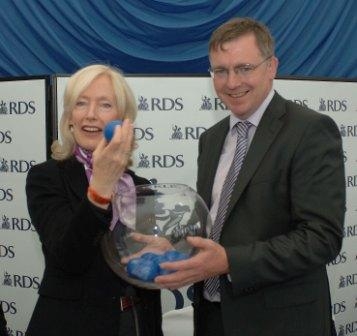| FEI Director Press Relations, Grania Willis, and Pat Hanly, Show Director at the draw for order-of-go at the Discover Ireland Dublin Horse Show in Dublin, Ireland yesterday. Photo: FEI/Tony Parkes Story: FEI/Louise Parkes. |