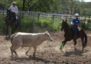 The day of the clinic dawned fine and hot and even though the temperature could have been turned down a little, there was plenty of shade and the horses were well rested in the middle of the day. The cattle yards at Woodford are well shaded, so the cattle were comfortable and worked very well.