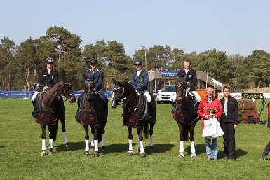 Germany wins the first leg of the brand new FEI Nations Cup™ Eventing series: (left to right) Kai-Steffen Meier, Andreas Ostholt, Michael Jung, Andreas Dibowski with Chef d'Equipe Hans Meltzer and representative from YOUSPORT. Photo: PSV J.Morel |