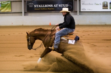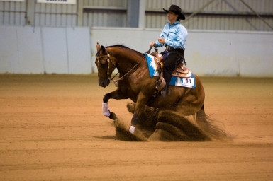 The First Continental Affiliate Qualifier (CAQ) Show was held in conjunction with the annual Victorian Reining Horse Association’s State Championship Show held on 25 & 26 February 2011 at Werribee Park National Equestrian Centre. This show was momentous to reining as the VRHA celebrated the 20 year anniversary of Reining in Victoria. Competitors travelled from far and wide in pursuit of the 17 Maryann Powell Trails End Trophy Buckles up for grabs and a slice of the prize money throughout the two day program. Competitors also were contending in the first round of qualifying for the NRHA Continental Affiliate Championships to be held in Tamworth during August this year at the Reining Australia National Show and the GVRHA ‘Ride and Slide to America’ Series challenge.
