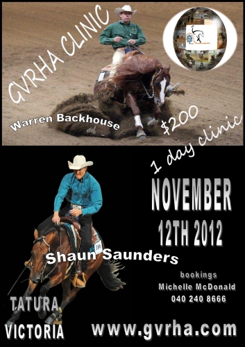 Goulburn Valley Reining Horse Association (GVRHA) are hold a reining clinic with Warren Backhouse and Shaun Saunders on Monday 12 November.