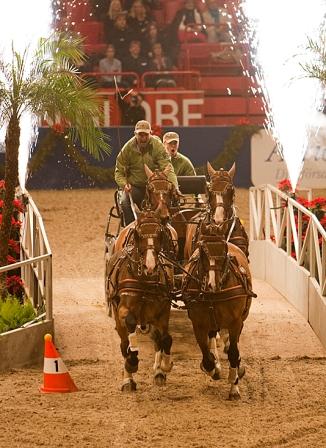 Boyd Exell, who won the previous World Cup competitions in Hannover and Stuttgart with a wild card, was last to start in the World Cup competition in Sweden’s capital city. Exell had a slight miscommunication with his leader horses when he approached the first marathon obstacle and this cost him precious seconds. As Eriksson had driven a sensational clear first round, it was Eriksson who was in favour to start last in the winning round. Exell nearly made the same mistake again in the second round but corrected at the last moment. The 2010 World four-in-hand champion drove a fast clear round and put the pressure on Eriksson.