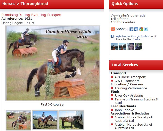 As part of Horsezone’s plan to continually improve the site and add value for our advertisers, we have launched a new Facebook ‘Like’ button which is attached to each listing.
