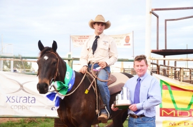 The 2012 Cloncurry Stockman's Challenge and Reg Brown Memorial Cup was won by Hugh Miles riding Woolerina Rythem, with a score of 339. This is the second year in a row that Hugh has won this event, no easy task considering the huge number of entries and high quality of the horses and riders competing. Congratulations!