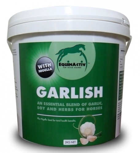 EquinActiv Garlish is an all natural dietary supplement combining the goodness of Garlic, Soy, Nigella Seeds and a combination of vitamins and herbs to promote vital health functions in the horse. Garlic is the most widely used herb in the equine world.