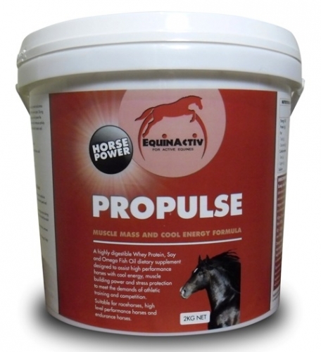 EquinActiv ProPulse provides quality protein and amino acids to assist with optimum muscle mass and greater power output. During hard training or intense workouts, large muscle groups which power the horse are broken down and damaged. Equines involved in strenuous activity require more proteins and amino acids to enable the body to repair and rebuild bodily tissues and functions.