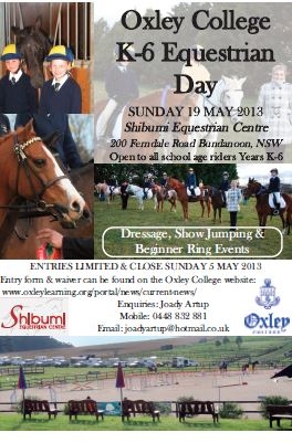 Primary school students from Kindergarten to Year six are invited to participate in the inaugural Oxley College K-6 Equestrian Day to be held on Sunday 19 May 2013 at the Shibumi Equestrian Centre, Bundanoon.