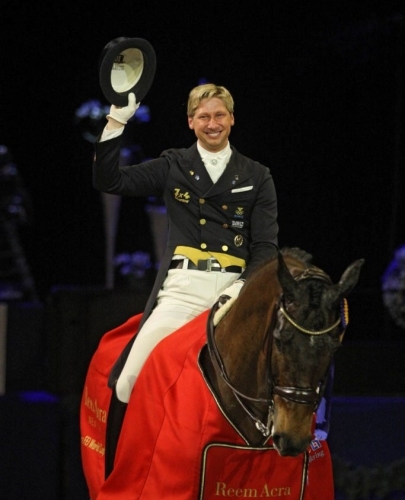 | Patrik Kittel and Toy Story won the third leg of the Reem Acra FEI World Cup™ Dressage series on their home turf in Stockholm, Sweden this afternoon. Photo: FEI/Roland Thunholm Story: FEI/Louise Parkes. |
