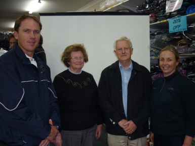 | L-R: John Vanden Nieuwboer Sydney Equestrian Supplies Director, Lesley Dowey, Dr John Kohnke & Claudia Reid (Sydney Equestrian Supplies) at a Dr Kohnke Seminar held at Sydney Equestrian Supplies. Cassi Tonkin from Sydney Equestrian Supplies said that they organised the Seminars with Lesley, who would introduce John and also answer any questions if he was busy with someone else. |