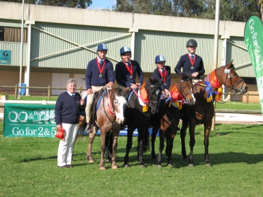 After arriving in Western Australia, Madeline’s horse Scamp enjoyed a few days rest before the start of the Nationals competition. Entered in three events Madeline had a full schedule on each day of the competition, with either a Dressage test or a Showjumping round, and on most afternoons a phase of the Tetrathlon. Tetrathlon involves four elements, rifle target shooting from 30 metres, running 1.5km, ride a 600m course with showjumping fences and swim the furthest distance in four minutes. The NSW Tetrathlon Junior team consisted of three Mounted Games boys, Kynan Trotter, Tom Pearce, Thomas Read and Madeline Prell.