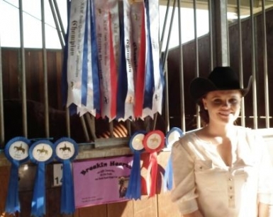 I've had Breakin Hearts since the end of 2007 and have been showing her consistently ever since. We compete in all the events - all western events (western pleasure, trail, horsemanship, showmanship, western riding and reining) as well as all the english events.