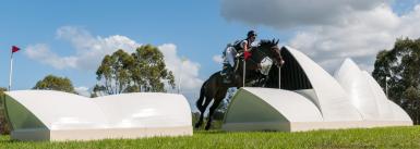 Sydney International Horse Trials has unveiled its spectacular new Opera House jump. The jump was designed by artist Anwen Keeling, jump builder Brett Ryan and Olympic Medallist and course designer Stuart Tinney. Built by Millgate Farbications, Scone and Brett Ryan. (Photo: Franz Venhaus)