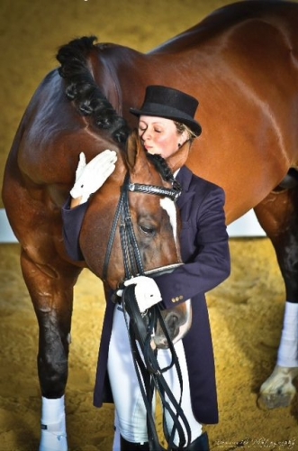 Prestige VDL (also known as MR P) was bred by VDL stud and initially trained by Edward Gal. He is a beautiful bay stallion 16.3 hh with four white socks and blaze, with the most amazing paces and temperament to match. He is by the Olympic Stallion Silvano N.