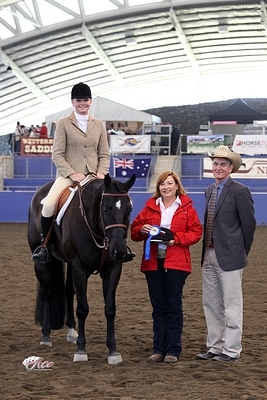 | Ampleur Hot and Hawnie and Raelene Gilboy won the 3 Year Old Hunter Under Saddle Class and Futurity |
