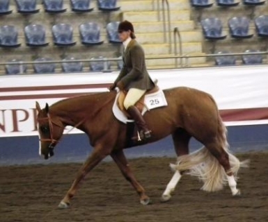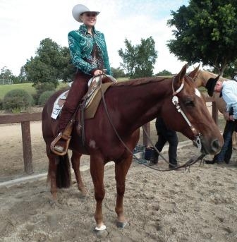| Natasha Backhouse had a great show, winning not only the prestigious 2 Year Old Western Pleasure Futurity, but amongst other classes, the Junior Horse Western Pleasure Stakes, riding Liberations (pictured) |