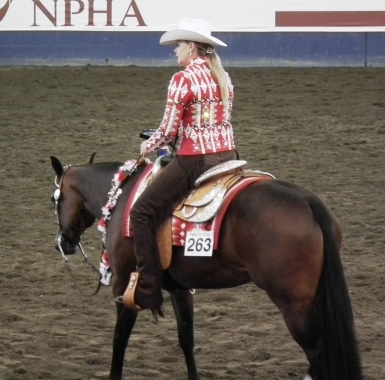 | I Always Want to Win and Rebecca Fatchen (wearing a stunning bling creation that she designed) after winning the Senior Horse Western Pleasure Stakes |