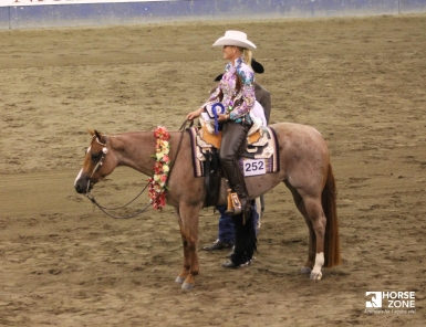 Winner of the $7,000 Platinum Equine Junior Horse Western Pleasure Derby - Good Ride Girl, ridden by Kristy Mobberley and owned by Kathy Sapurro
