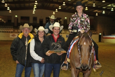 Warren Backhouse riding Anita Ganzer’s ‘Rocin on the Ranch’ won the Open Derby (Photos: Jenny Solomon) |