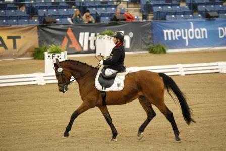 The excited and enthusiastic competitors were ready to chat after their tests today and their positive attitudes are evident. Katja Karjalanen from Finland, bronze medallist in Freestyle Test Grade 1b said "This is quite a new horse for me - Rosie was a Christmas present!" America's, Rebecca Hart, who competed in Grade 2 today commented. "It was fun, awesome. This is the last time I will be competing this horse because I am retiring him. Pippin is 19 years old and he is going to live a life of luxury and enjoy his pasture. I do not have a replacement for him as yet. When asked what's next, Rebecca said, "hopefully London (Olympic Games) is next. In all honesty, representing our equestrian sport has been amazing - to finally get included with the other riders". Fernando Gigueroa from Mexico, who finished 8th in Grade 2 Freestyle today commented, "I am new to the sport. I hope you like it - the judge liked it and everyone else liked it too!"