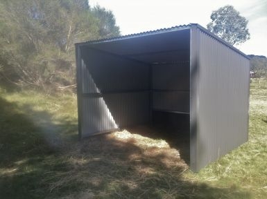SVE Rural Tech have four brand new Colorbond Paddock shelters available now, in colour Headland (which is a warm red/maroon - not the colour pictured).