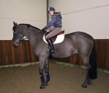 Olivia riding Chicago, a huge horse of Ludo's who won the six bar at Olympia